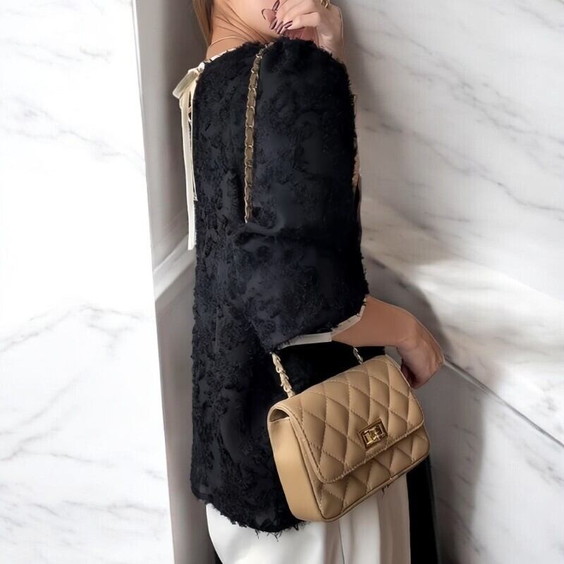 フラワージャガードの生地を使用しており、袖口はフリルで、バックリボンも付いています。