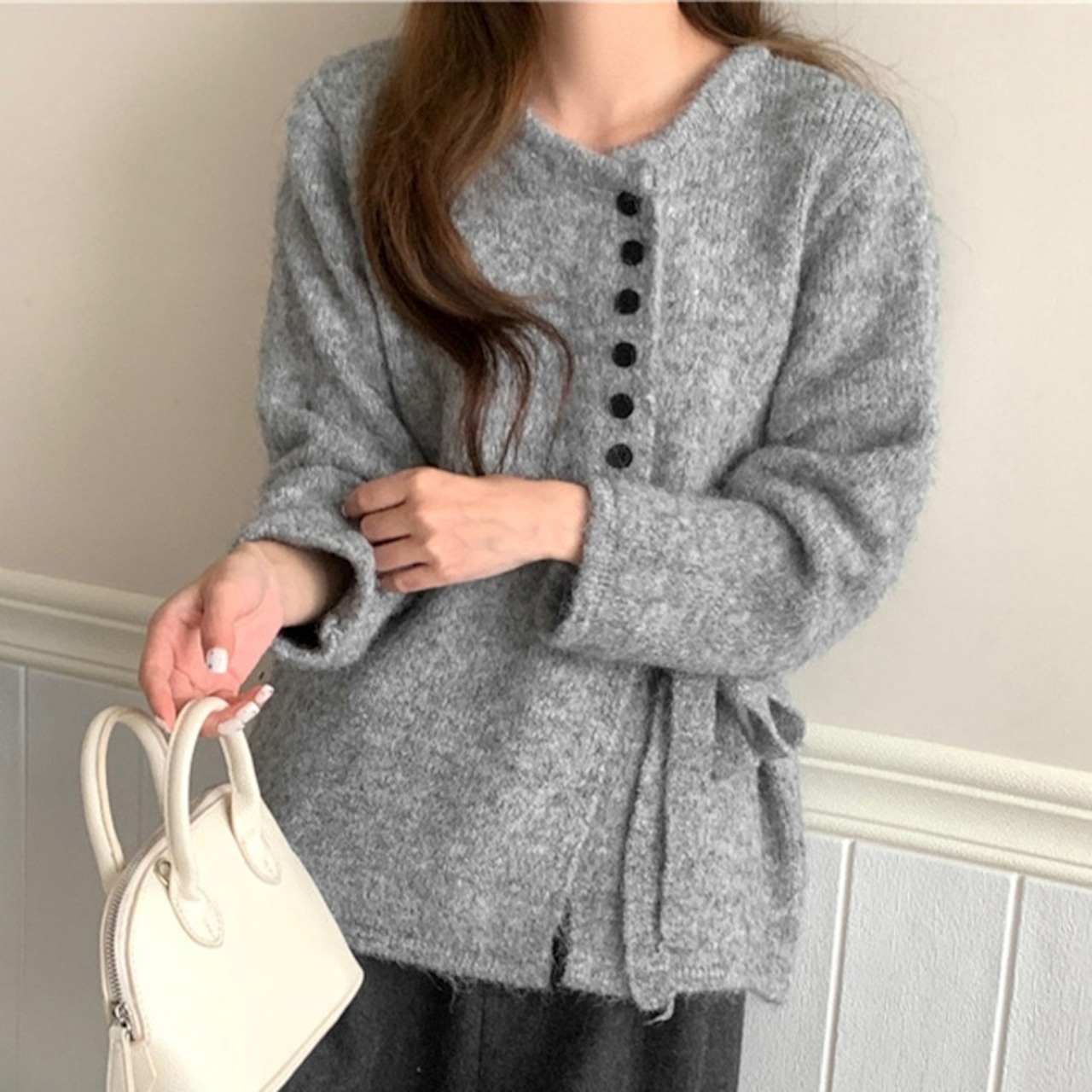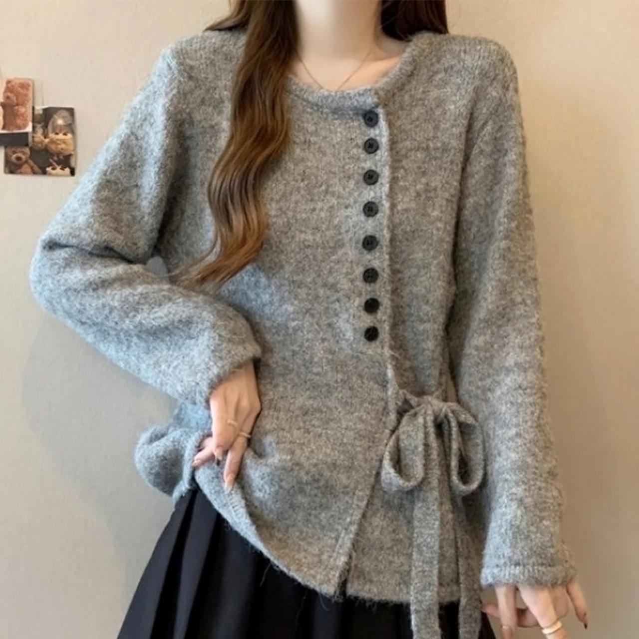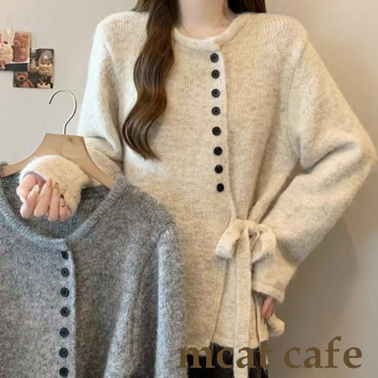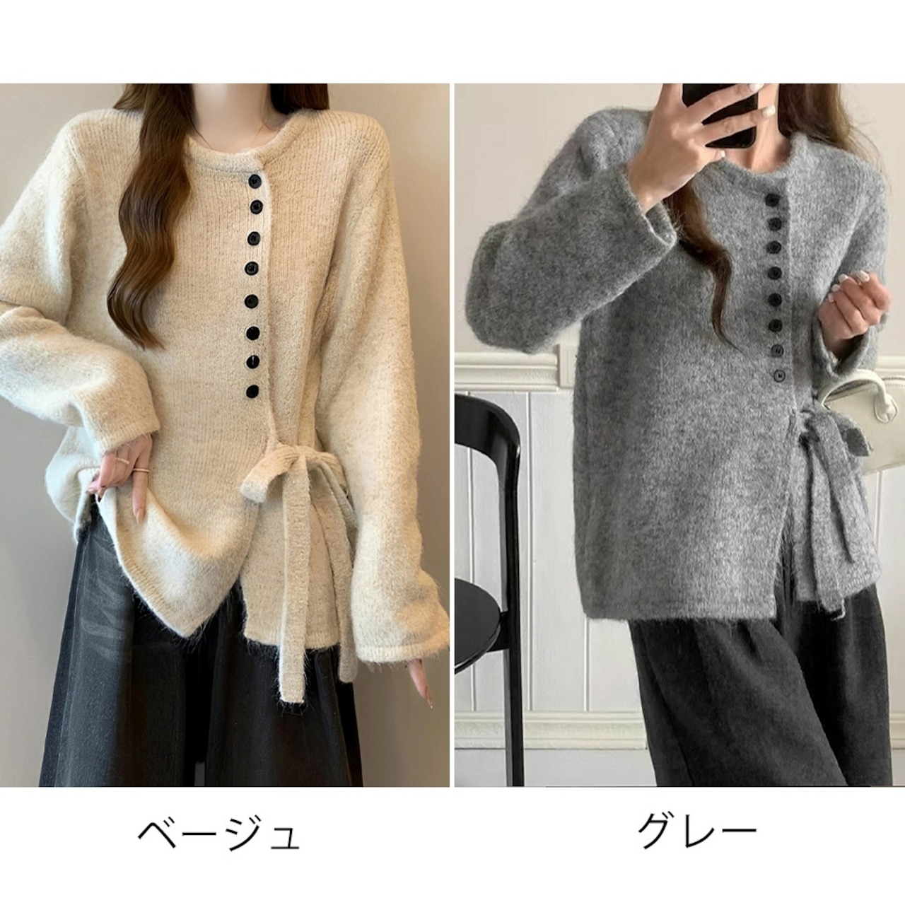 デザインリボンがトレンド感溢れる長袖ニットです。