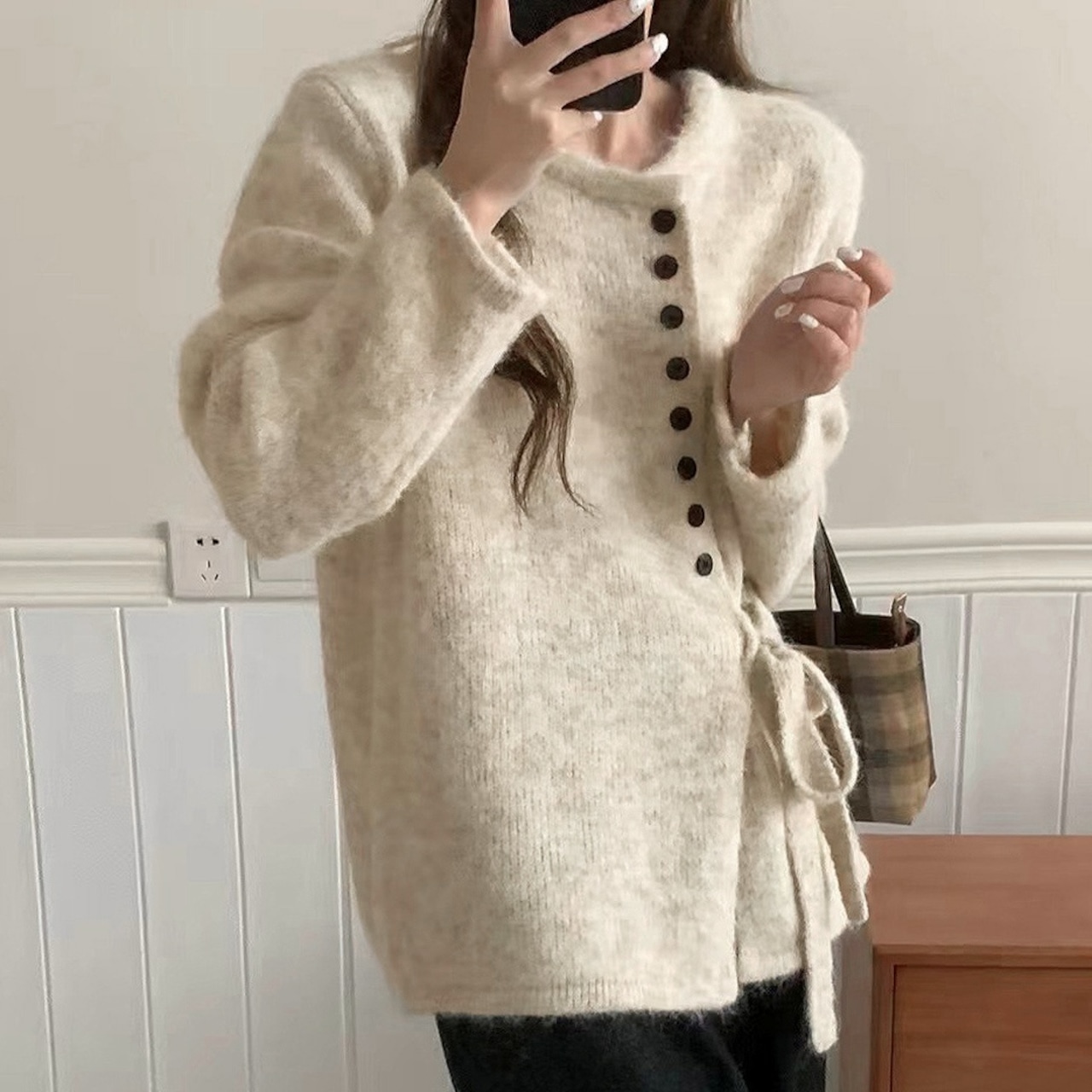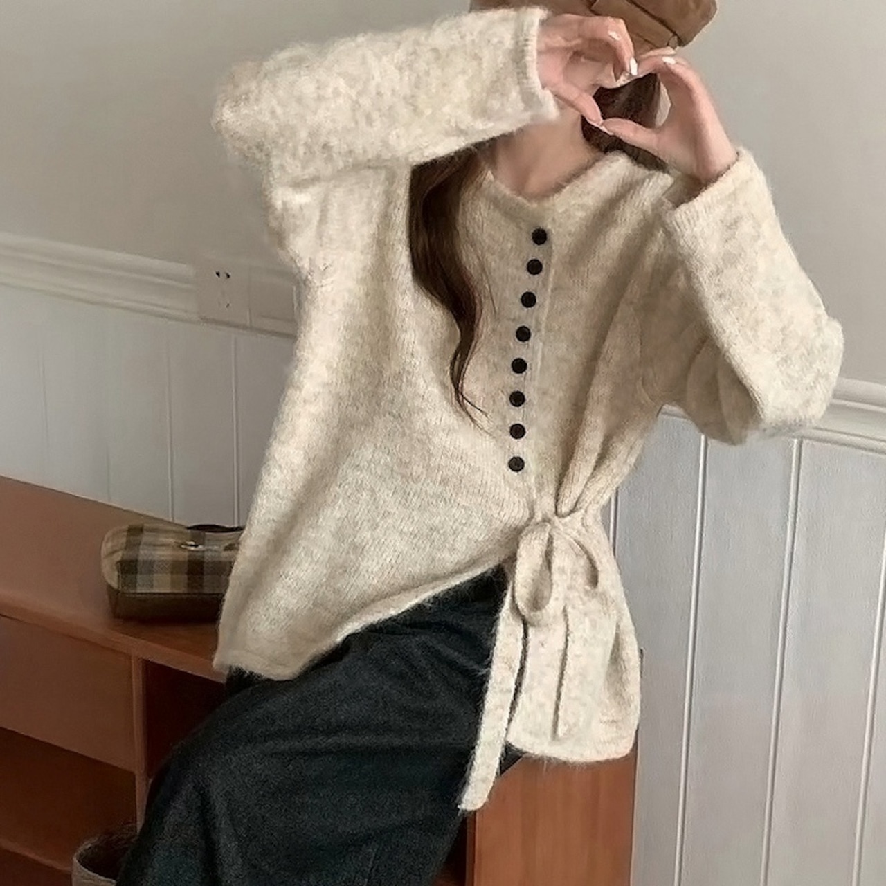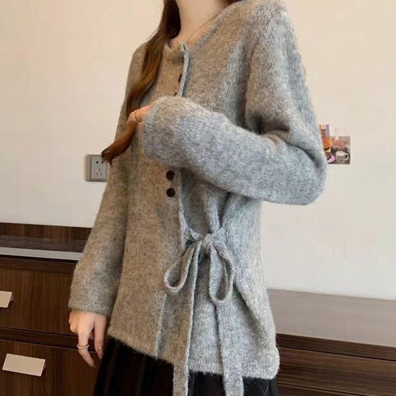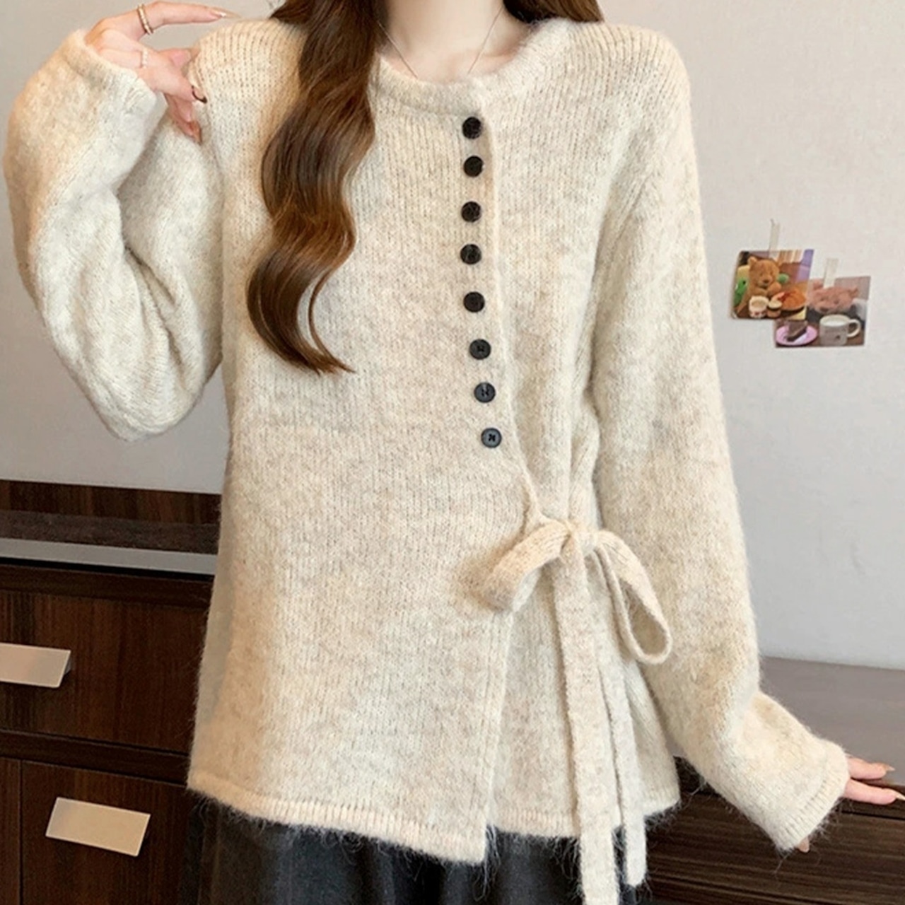 デザインリボンがトレンド感溢れる長袖ニットです。