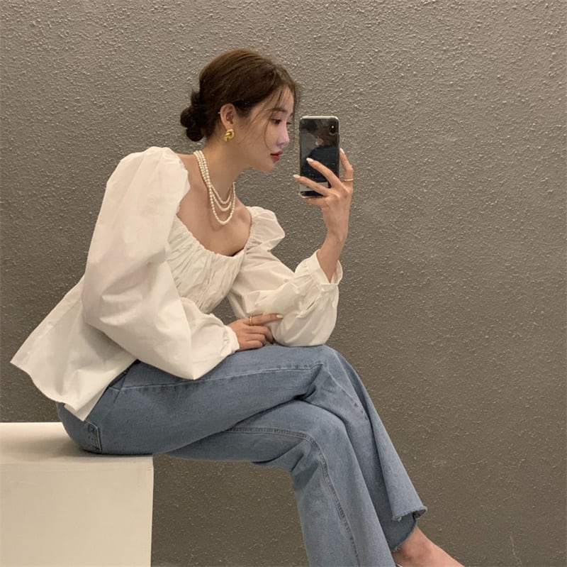 エレガント パフスリーブ ブラウス