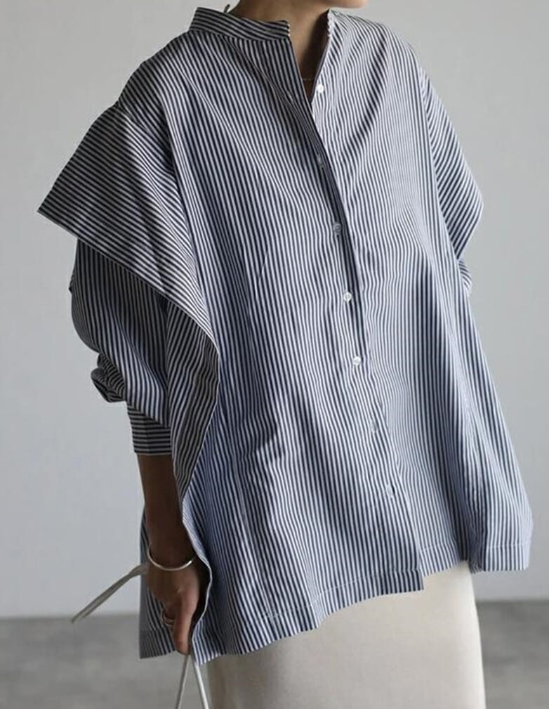 ドロップショルダーに加え、トレンドのボリュームスリーブもお洒落。