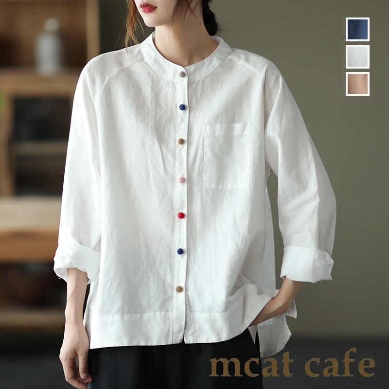 フロントのカラフルなくるみボタンがアクセントになった、可愛らしいブラウスです。